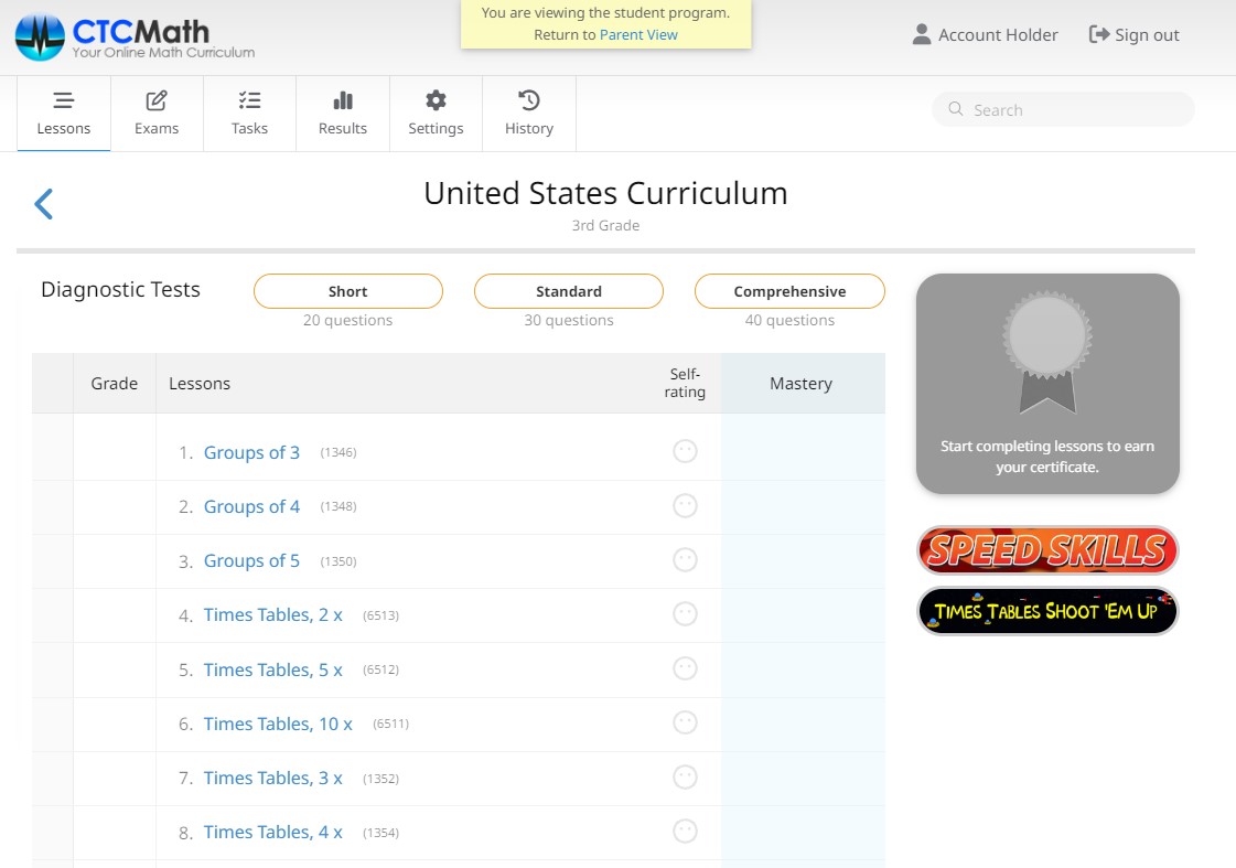 CTC is an oline program that children can use (mostly) on their own. Multiplication is taught with visuals (see images below). The program also offers online multiplication quiz games: “Speed skills” and “Times table shoot ’em up.”