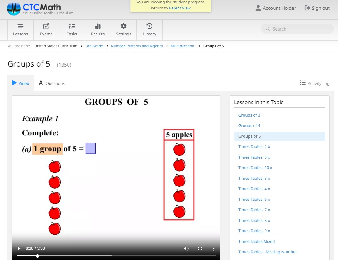 - For the upper grades there are video lessons that introduce each new concept to the child. The teachers in the videos are cheerful and excited about math. They often use visuals in the lessons as well.
