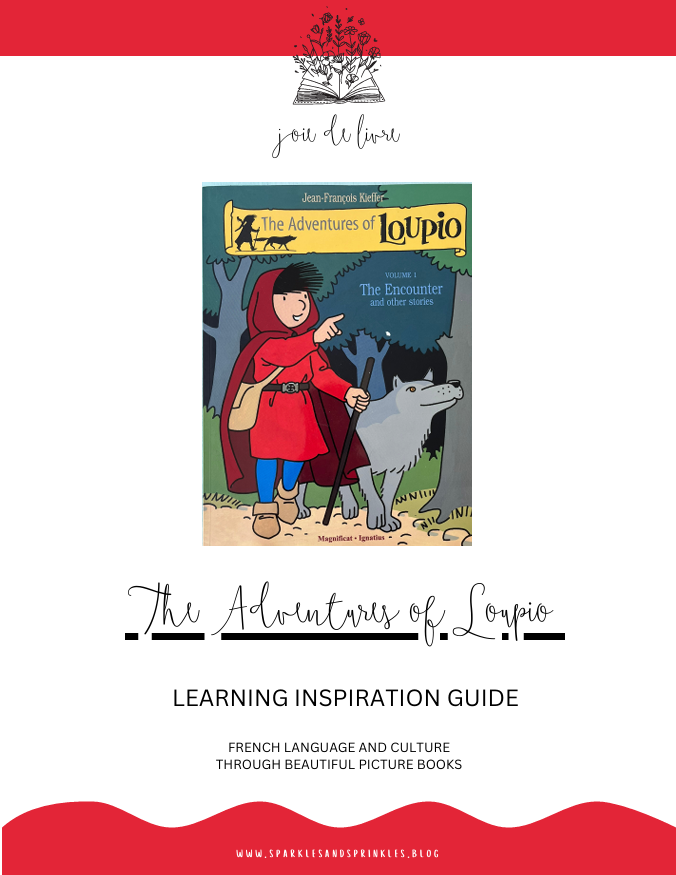 Joie de Livre Learning Inspiration Guides use beautiful picture books (in English) as a jumping off point for learning French language and culture. The guides are filled with fun and meaningful learning activities. It is recommended to do the guides in this order, but you could also choose to do any one of the guides on its own as well. Please note that the Loupio guide has a Christmas theme, so it may be most fun to do this guide in December/January. Spending about an hour a week on each guide will provide a full year of lessons (6 weeks per guide), but the guides can be used at whatever pace works for you and your family.
